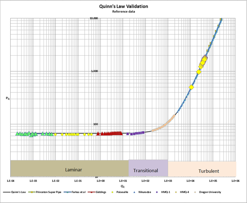 This author has devoted his entire career to doing fluid flow measurements, predominantly in packed beds relating to the field of HPLC. Rather than nibbling at the fringes of this complicated field of study by trying to manipulate one of the currently accepted theories, a completely novel approach was developed. The result of this effort, which took approximately 20 years to complete, was a universal theory which applies to all fluid flow embodiments, regardless of whether they contain particles and regardless of the flow regime in which they are operated. This model, which we refer to as the Quinn Fluid Flow Model (QFFM), has been developed from first principles and is different from any other model currently extant. . Moreover, it has been validated by testing it against a host of generally accepted experimental data reported in the literature, as well as this author’s own measurements. A comprehensive list of the various studies used in this task are listed below.